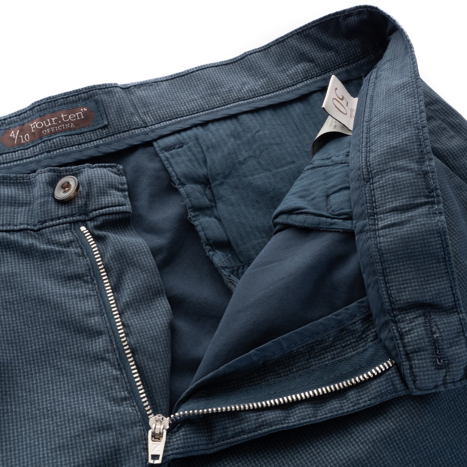- Back welt pockets with button closure