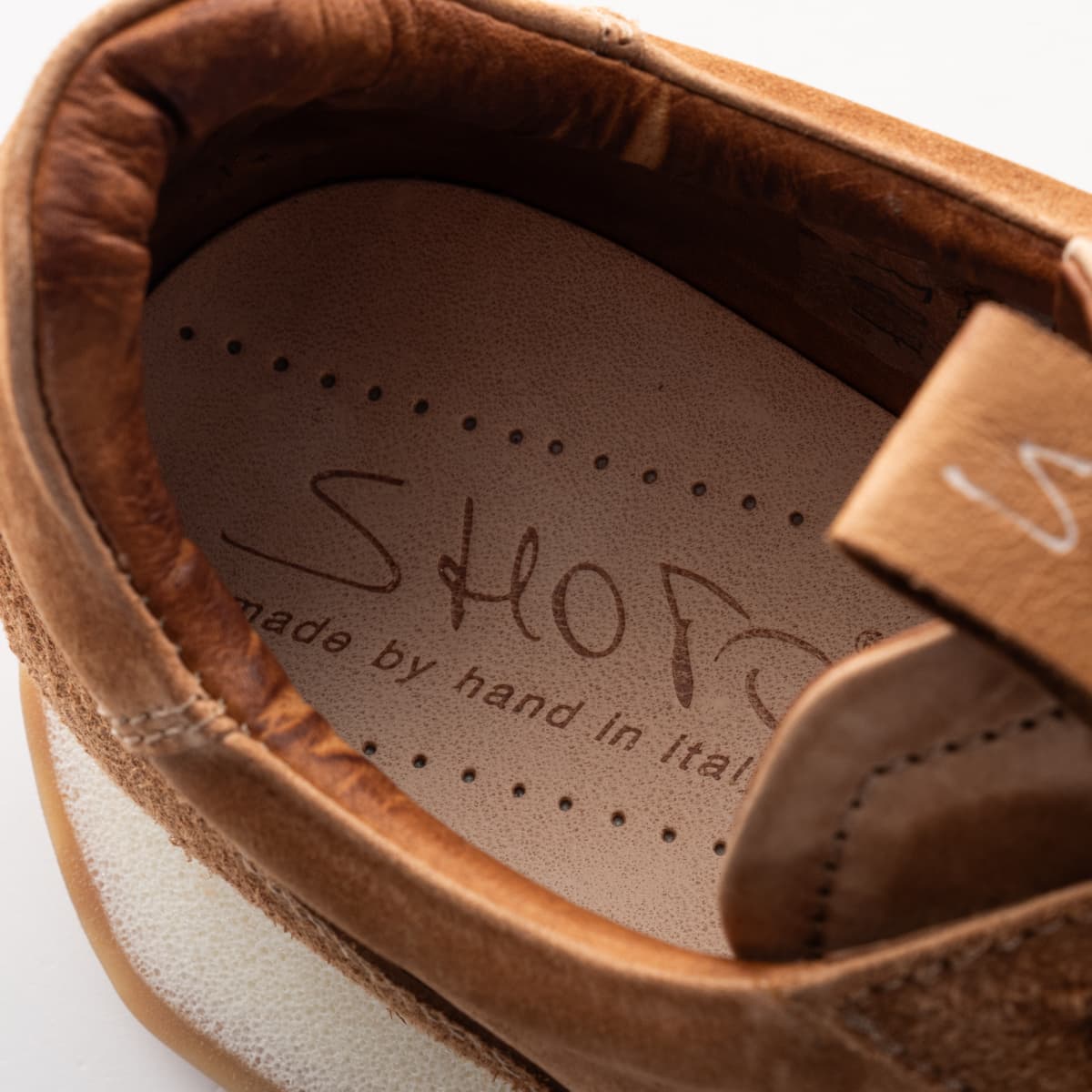 Using traditional craftsmanship, Stefano Medori, the second generation, makes unique shoes with great passion. By hand, each shoe is first dipped in a dye bath and then air-dried for at least 24 hours. This creates a unique colouring and varied shades - each wash is unique.