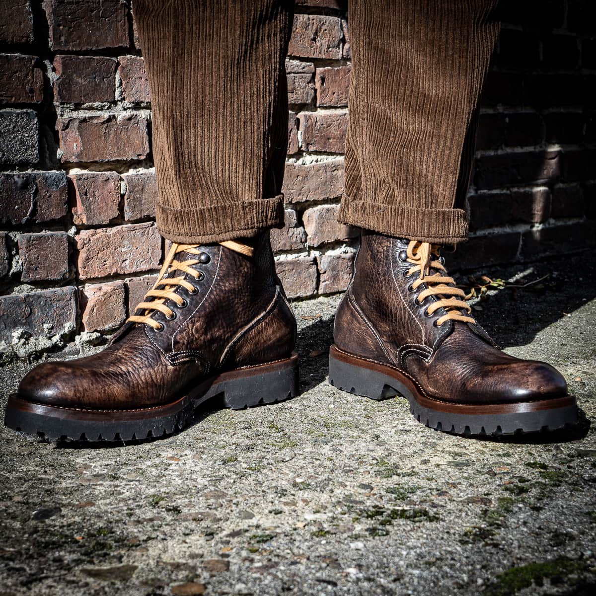 In the 'Stoned Washed' process, the shoes, which are treated with abrasive stones, gain an authentic vintage look. The final finish brings out the unique characteristics - the gradients and shades. The use of premium horse, elk, antelope and calf leather, combined with the best Italian leather soles, create a one-of-a-kind shoe of the finest quality.