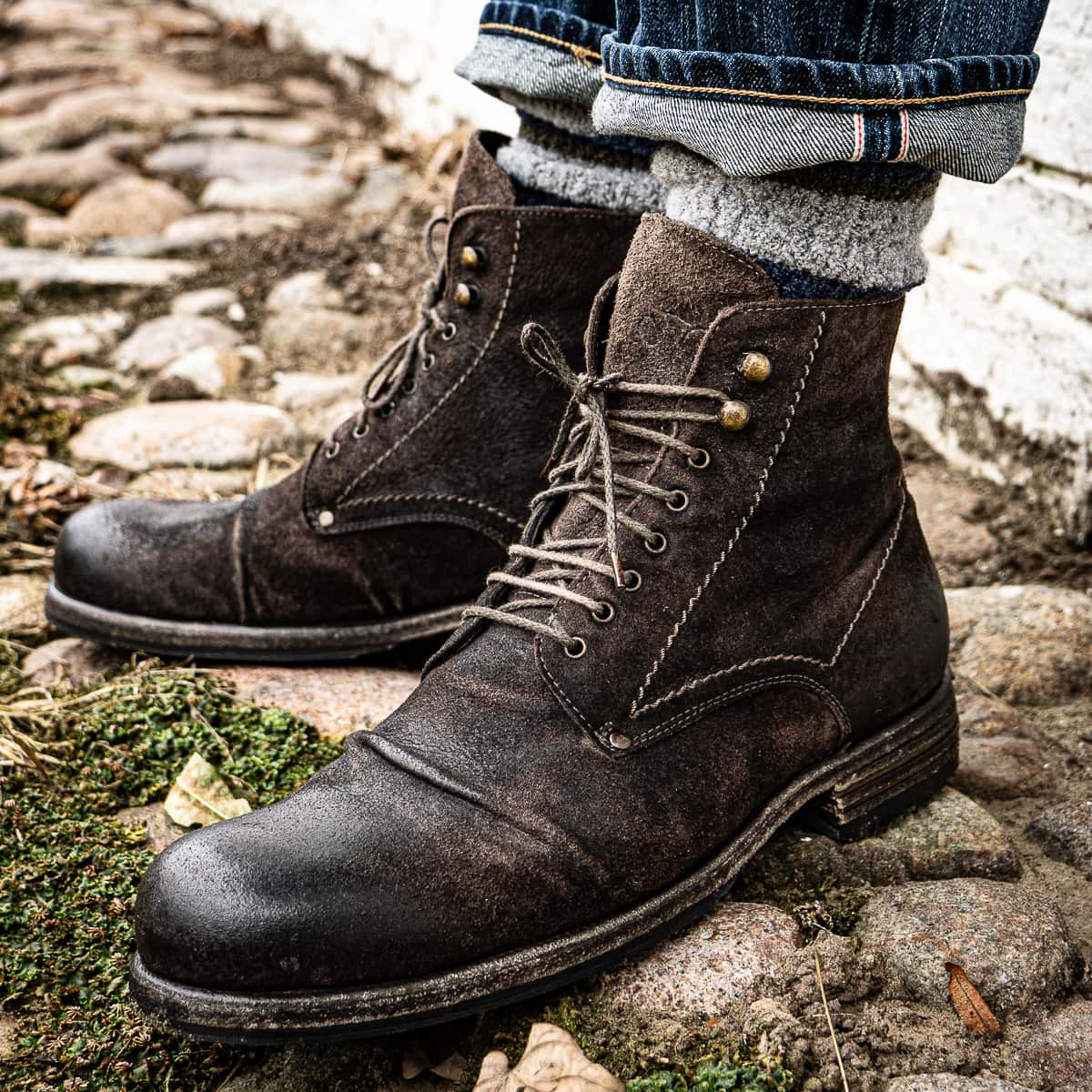 In the 'Stoned Washed' process, the shoes, which are treated with abrasive stones, gain an authentic vintage look. The final finish brings out the unique characteristics - the gradients and shades. The use of premium horse, elk, antelope and calf leather, combined with the best Italian leather soles, create a one-of-a-kind shoe of the finest quality.