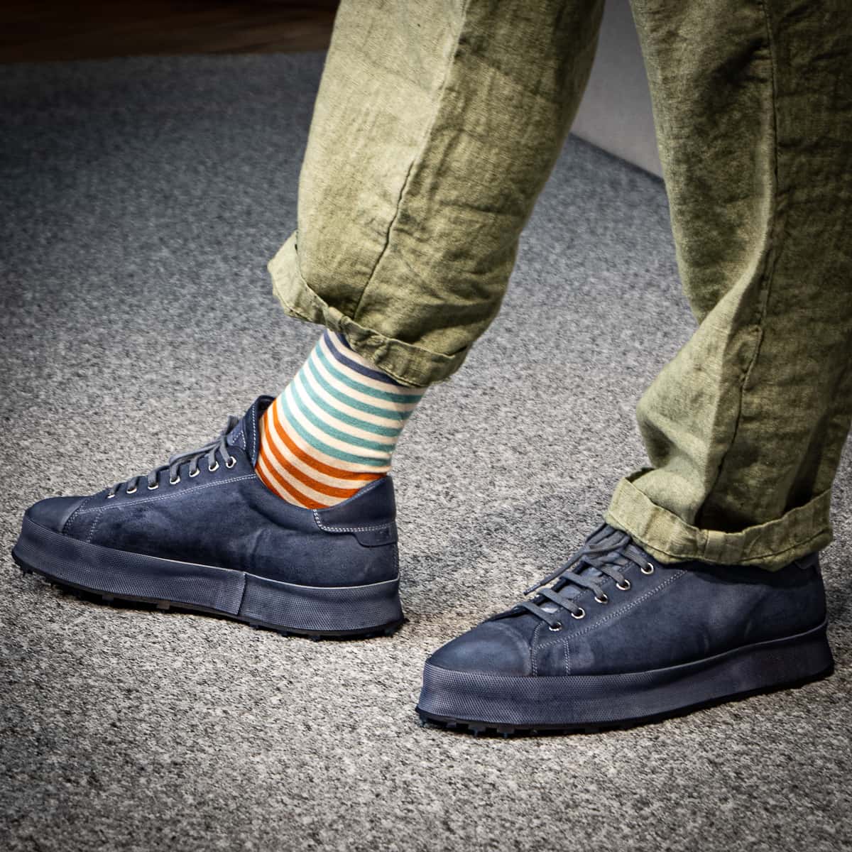 A fashionable sock with fine stripes. Colour accents on the toe, heel and cuffs create a special look. Soft fabric mix for a high level of comfort.