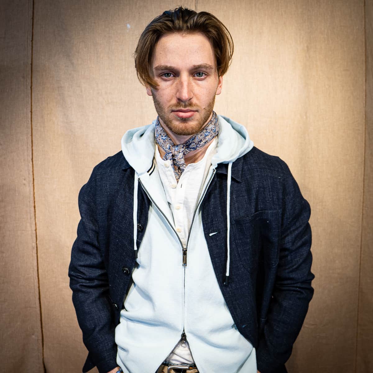 Bandana scarf made from a super soft silk-cotton blend with a floral pattern.