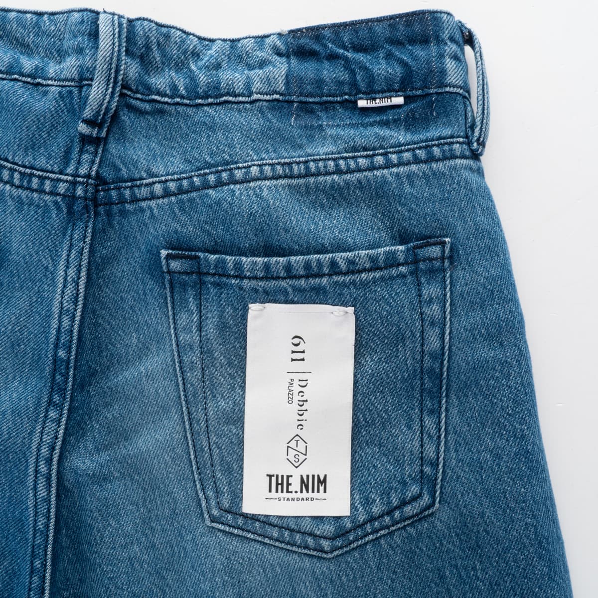 Wide, softer, Debbie: The.Nim Standard’s palazzo jeans combine casual volume with modern sustainability. Made from a fabric blend of BCI certified cotton, Lyocell and recycled polyester, these jeans feel light and smooth on the skin while making a confident statement. Classic 5-pocket styling, a logo-embossed metal button and zip-fly closure reflect iconic denim heritage. Contrast stitching and the label patch on the back pocket complete the authentic design.