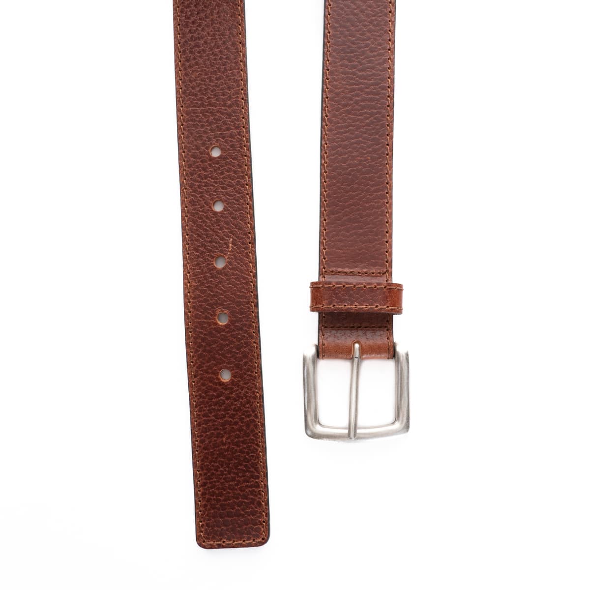 The Vamp belt by Themata combines a rugged look with artisanal craftsmanship. Made from textured cowhide leather, this belt stands out with its distinctive grain and wide, silver-tone pin buckle. The warm cognac tone adds a timeless yet casual flair. With its 4 cm width, it’s a versatile choice for pairing with jeans or chinos.