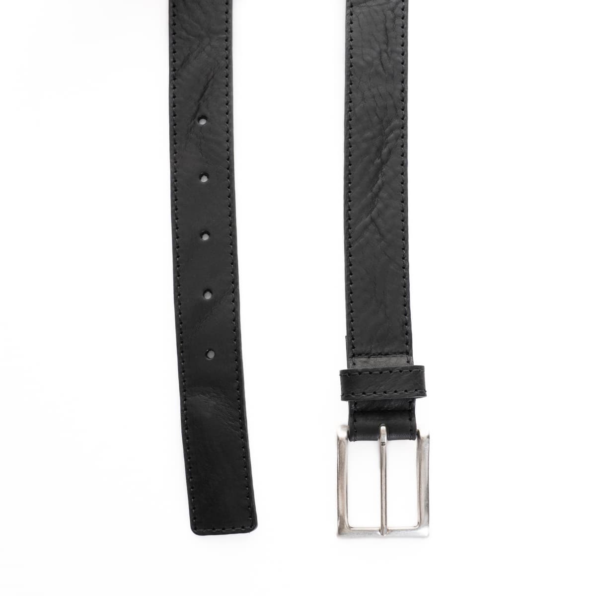 The classic men’s belt Ragaz by Themata impresses with timeless design and premium craftsmanship. Made from smooth, slightly grained leather, it is the perfect accessory for both business and casual outfits. The fine topstitching along the edges and the silver-tone pin buckle give the belt an elegant touch. The black leather finish adds versatility and sophistication.