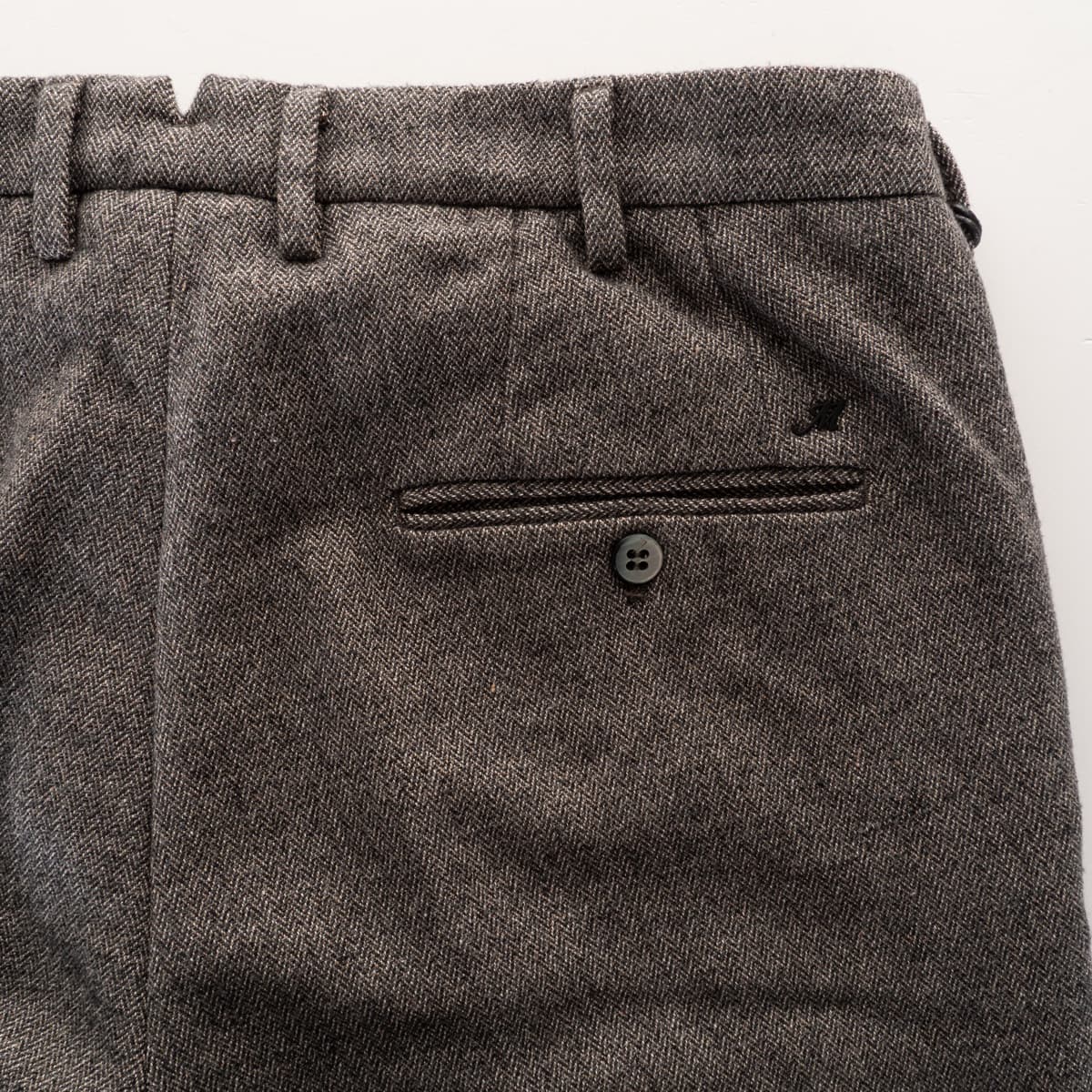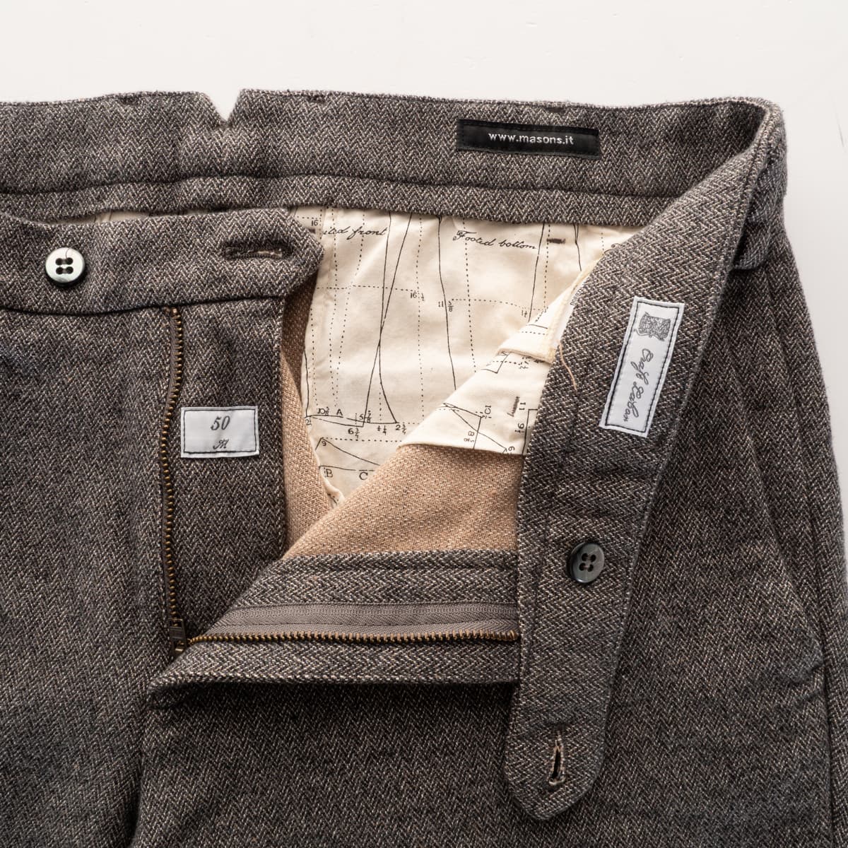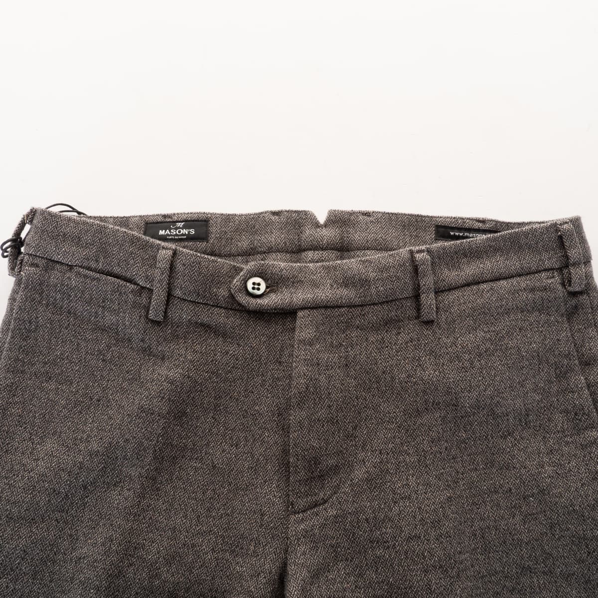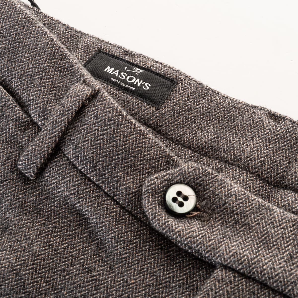 The "NewYork" trousers by Mason’s blend classic tailoring with a refined fabric texture. Crafted from a durable cotton-polyester blend, they feature a subtle bicolor Resca pattern that adds depth and visual interest. The Regular Fit ensures a timeless straight silhouette, while thoughtful details like the signature "M" rivet, piped back pockets with buttons, and the distinctive tailor-style waistband button complete the sophisticated design. A swallowtail slit on the inner waistband reflects fine craftsmanship.