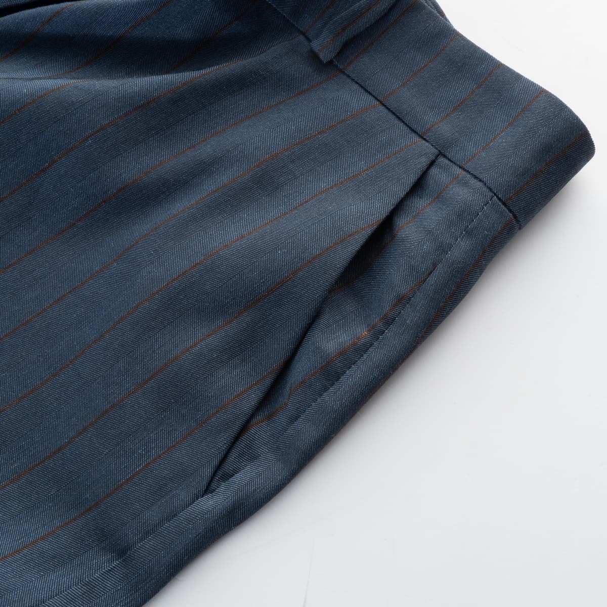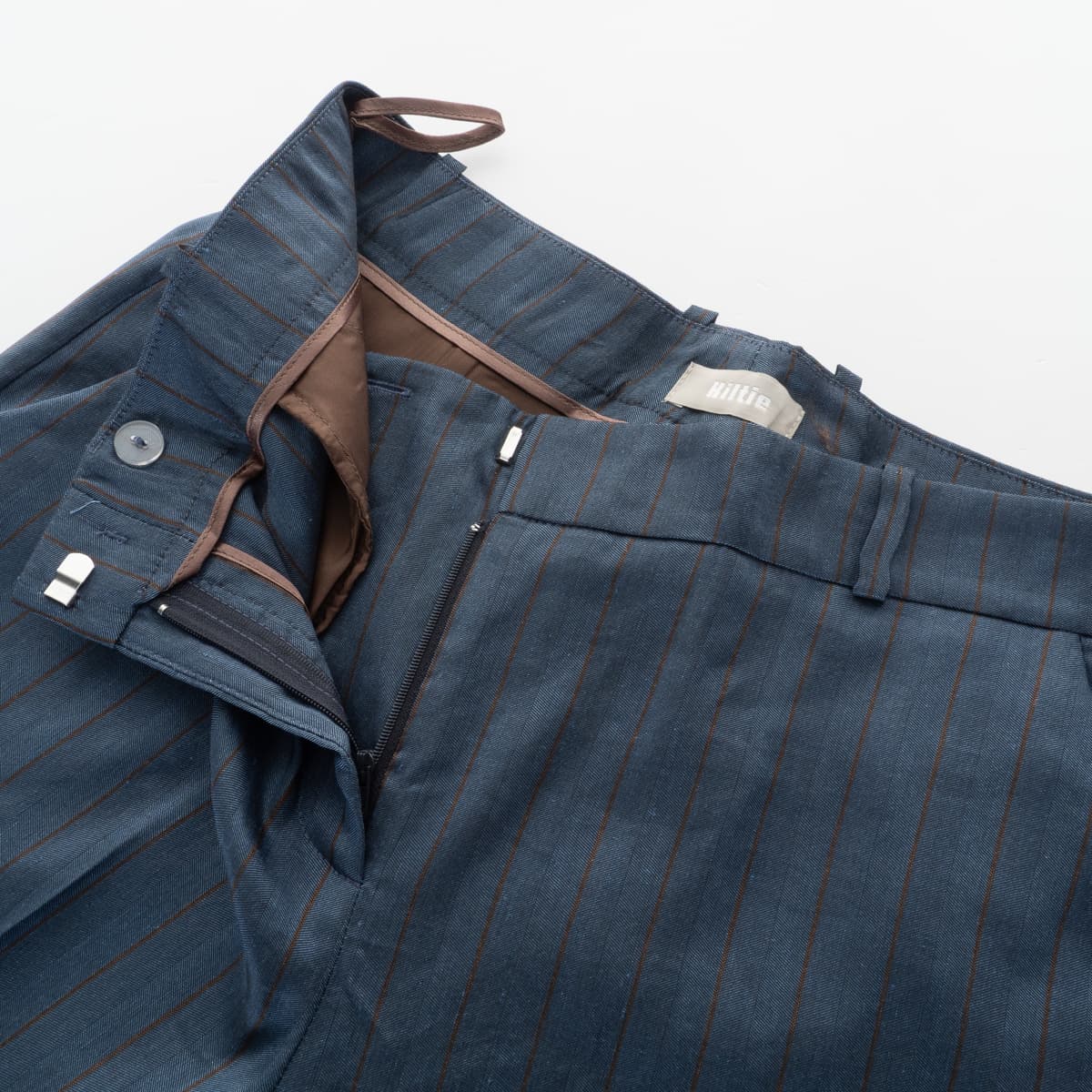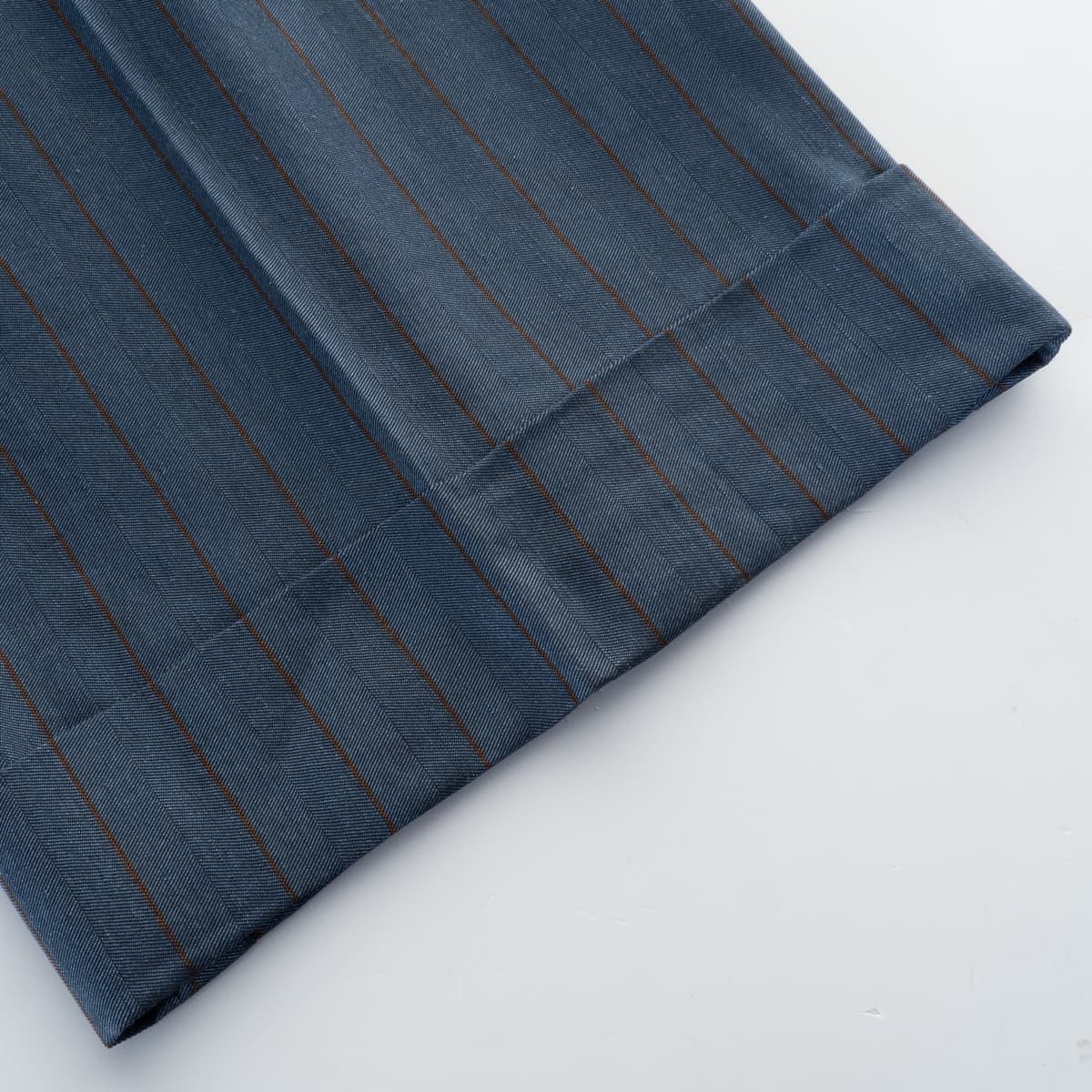 - Subtle pinstripe design in blue/brown