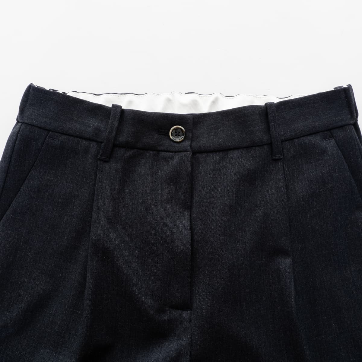 The “Blenda” trousers by Nine in the Morning combine fine Italian tailoring with modern sophistication. Made from 96% wool and 4% elastane, the fabric offers a smooth surface, soft touch and elegant drape. The high elastic waistband ensures comfort, while the front pleats and wide straight leg create a timeless, feminine silhouette.