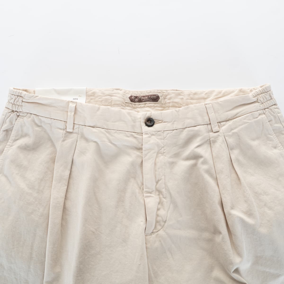 - Internal pleats at the waistband