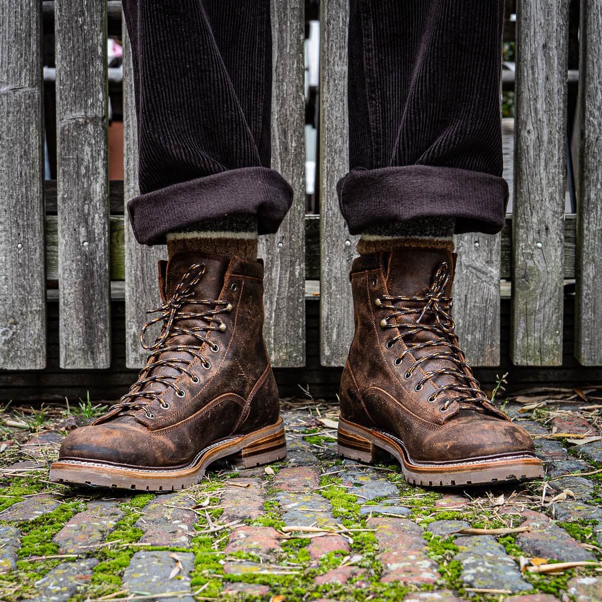 - Leather-rubber lug sole