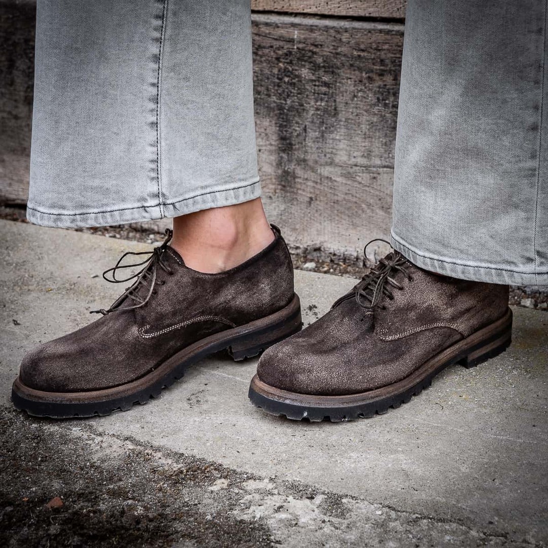 Kompromisslose Qualität und hochwertige Verarbeitung machen den "Derbyschuh 2476 aus Veloursleder" machen ihn zum absoluten Lieblingsschuh. Der coole Schnürschuh mit der sportlich-eleganten Derby-Silhouette ist dazu ein echter Allrounder. Der in rahmenbetonter Machart, aus rauem Kalbsleder gefertigte Schuh hat eine strapazierfähige Vibram-Gummisohle mit tiefem Profil. Natürlich von Hand gefertigt, natürlich vom italienischen Schuh-Label "Shoto".