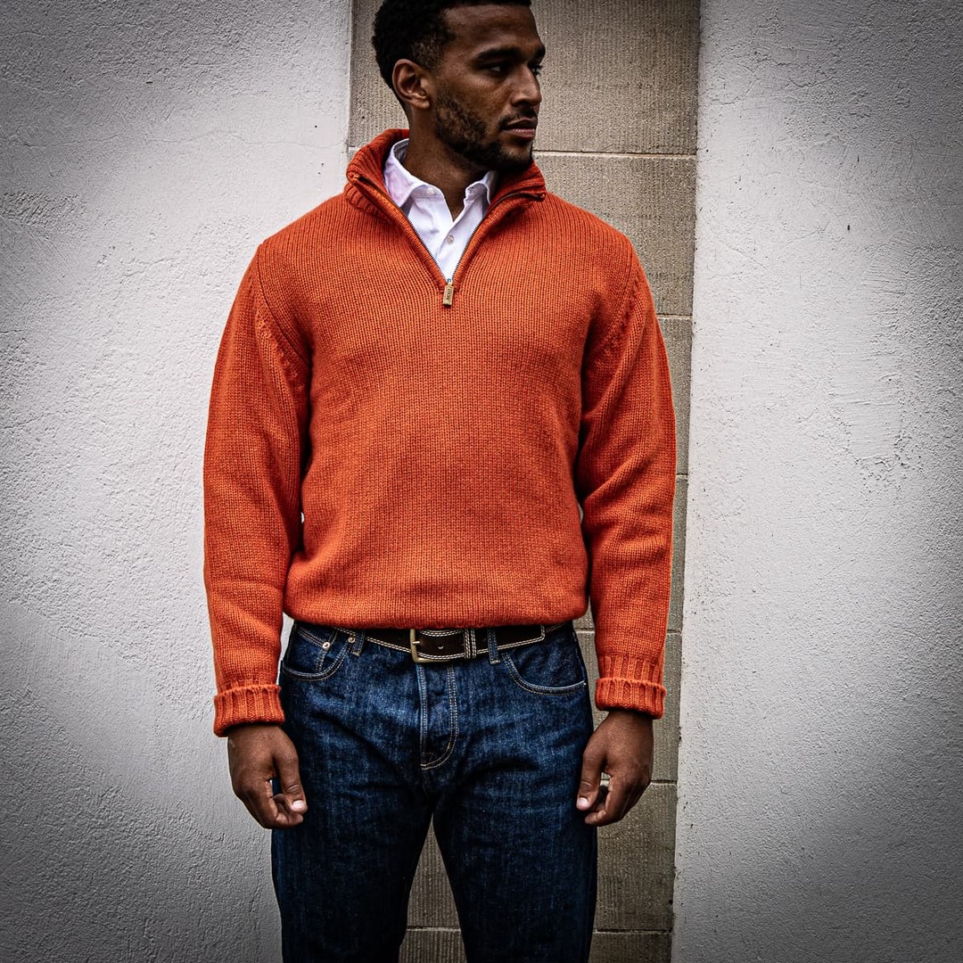 Er ist aus der "Fibre of Kings", dem "Stoff der Könige". Der edle "Kaschmirtroyer Alain", vom schottischen, familiengeführten Luxus-Stricklabel "William Lockie", sucht seines seinesgleichen. Er sieht nicht nur super gut aus, durch die Verarbeitung von 6-fädigem Kaschmir, welches von Bergziegen aus den besonders eisigen Klimazonen Chinas und der Mongolei stammt, hält dieser hochwertig verarbeitete Pullover auch besonders warm. Der Zipper geht bis hoch in den gerippten Kragen, die hoch gearbeiteten Bündchen am Saum und den Ärmeln sind ebenfalls gerippt. In Schottland produziert, verspricht dieser hochwertige Troyer Luxus, Wärme und Langlebigkeit. Übrigens, den schicken Pullover gibt es auch noch in Blau, Grau und Braun.