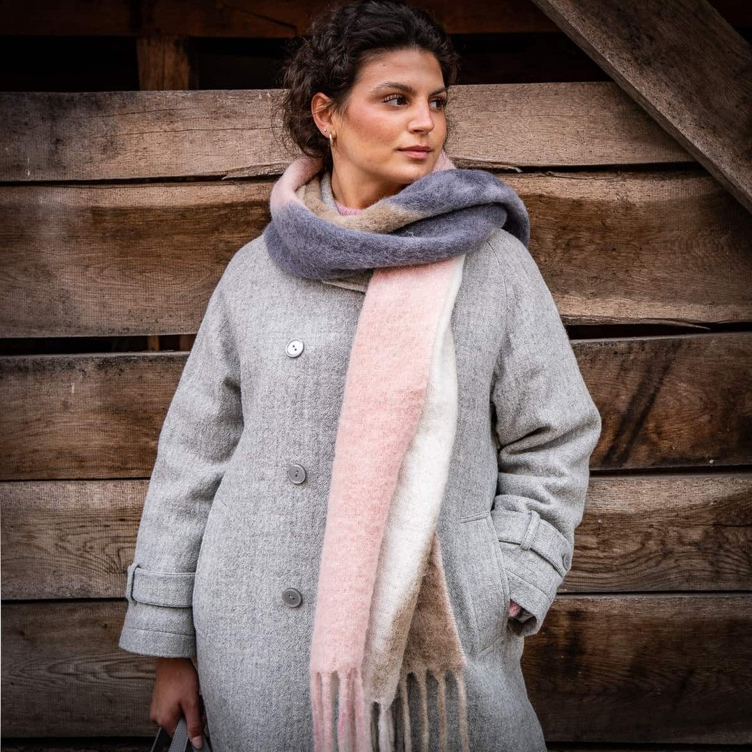 Er ist nicht nur kuschelig-weich durch seine gebürstete Oberfläche, er wärmt seine Trägerin auch an noch so kalten Tagen zuverlässig. Der besonders hochwertige "Flauschiger Alpaka-Schal" aus dem Hause "Altea" überzeugt auch durch einen schönen Farbverlauf in den Pastelltönen Rose, Beige, Creme und Anthrazit, der sich besonders gut mit der Wintergarderobe kombinieren lässt. Der 194 cm x 48 cm messende Schal ist mit langen Fransen an den Enden ausgestattet.