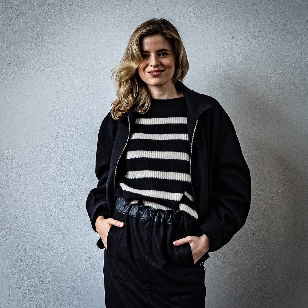 In zeitlosem Schwarz gehalten, vereint das Design edlen, weichen Kaschmir mit modernem technischem Material und schafft so eine klare, formstabile Silhouette mit zeitgemäßem Anspruch. Der Stehkragen mit Knopfverschluss sowie der hochwertige Zwei-Wege-Reißverschluss unterstreichen den angesagten Sport-Chic und verleihen der Jacke eine elegante Lässigkeit. Elastische Abschlüsse an Saum und Ärmeln betonen die feminine Linie und sorgen gleichzeitig für hohen Tragekomfort. Ein modernes Key-Piece für die kühle Saison, stilvoll in Italien gefertigt.