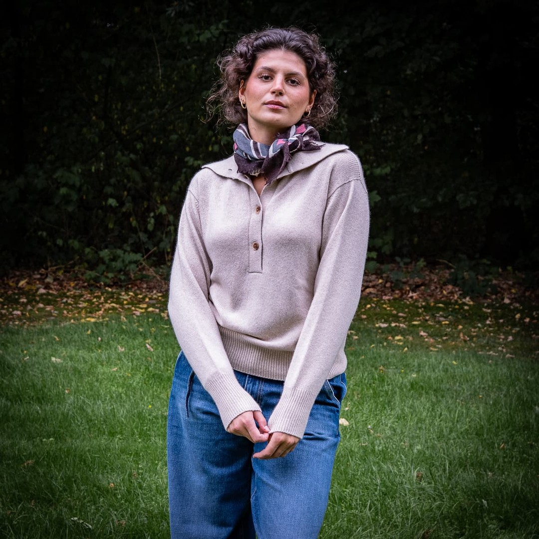 Leichter Strick. Er ist ideal für stilvolle Looks in der kühlen Jahreszeit und die besonders edle Kaschmir-Seide-Wollmischung unterstreicht die hohe Tragequalität. Der elegante "Strickpullover Kaschmir-Seide", aus dem Hause des italienischen Fashion-Labels "Liviana Conti" ist besonders leicht und atmungsaktiv. Der Hemdkragen ist mit drei Knöpfen versehen, Saum und Ärmelenden sind mit Rippbündchen ausgestattet.
