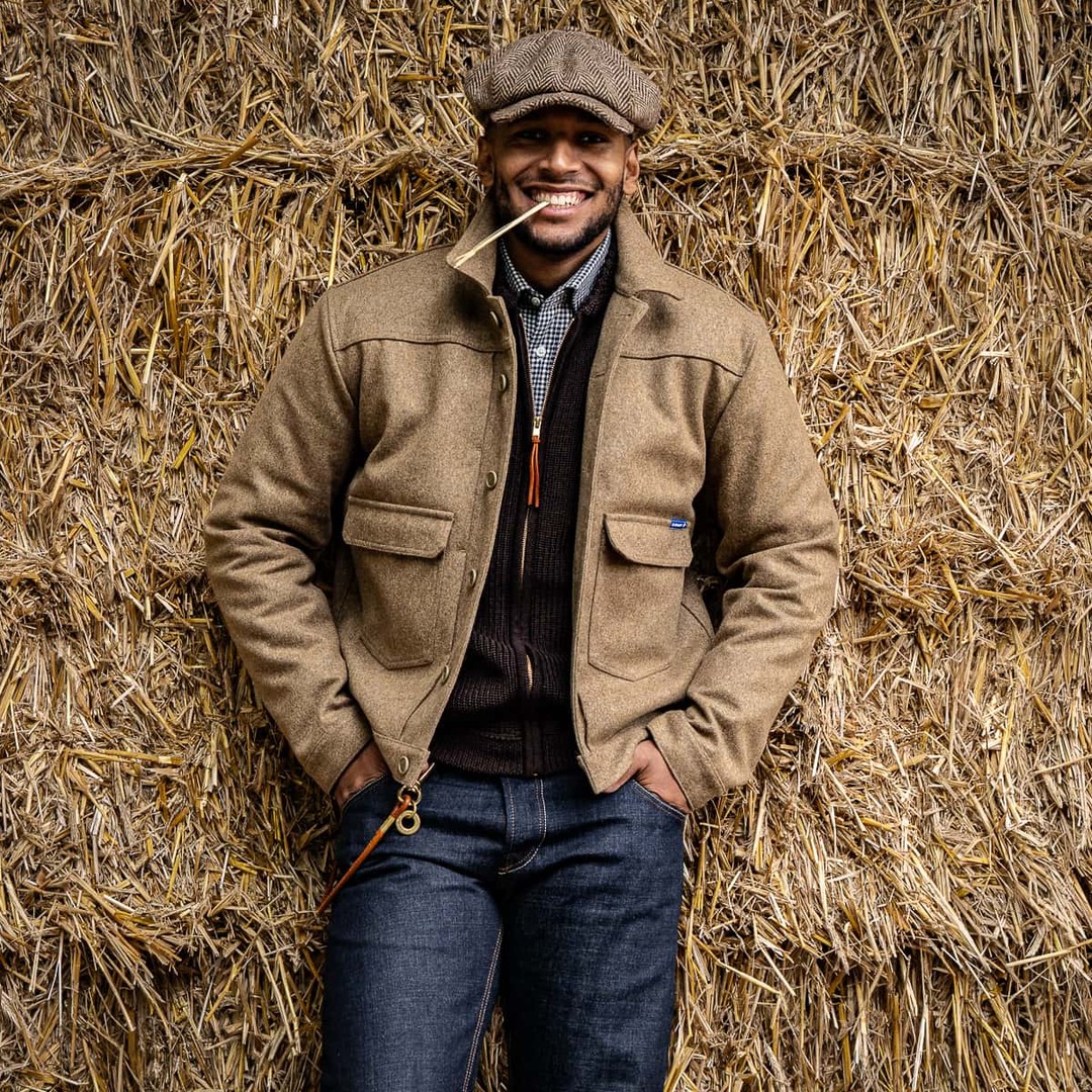 Style-Tipp. Unser Model Keanu ist sowieso schon eine coole Type, doch mit dem richtigen Outfit, zeigt er, dass immer noch etwas mehr geht. Keanu trägt die "Gerader Blaumann 15oz" 5-Pocket mit historischer Webkante, verstärkten Taschen und nummerierten Lederetikett (stark limitierte Kleinserie). Die hochwertige Webware ist im Originalzustand, d.h. sie ist steif und tiefblau. Für oben herum hat er sich für die "Jacke aus bayrischem Loden", wie die Hose, vom deutschen Jeans-Label „Blaumann“ entschieden. Die angesagte, kurz geschnittene Jacke ist aus reiner Wolle und somit temperaturregulierend und windabweisend. Ein markanter Kragen, eine hervorgehobene Schulterpartie und zwei große, aufgesetzte Taschen mit Patte bestimmen das äußere Bild dieser coolen Jacke. Als Abschluss dieses stilsicheren Outfits trägt Keanu eine "Newsboy Arthur Retro Cap Light Brown" aus 100 % Wolle mit einem edlen Fischgrät-Muster vom schwedischen Mützen-Label "Wigens". Mega, oder? Schreib’ uns gerne deine Meinung.
