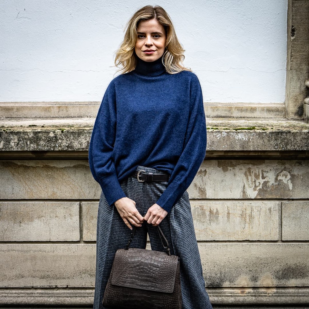 Der Kaschmirpullover Marine von Les Tricots de Léa überzeugt mit einer angenehm flauschigen Haptik und klarer Silhouette. Der hochwertige Garnmix aus Wolle und Kaschmir sorgt für wohlige Wärme, ohne schwer zu wirken. Breite Rippbündchen und überschnittene Schultern geben dem Modell eine entspannte, moderne Linie. Ein vielseitiges Essential, das solo genauso gut funktioniert wie unter Mantel oder Jacke.