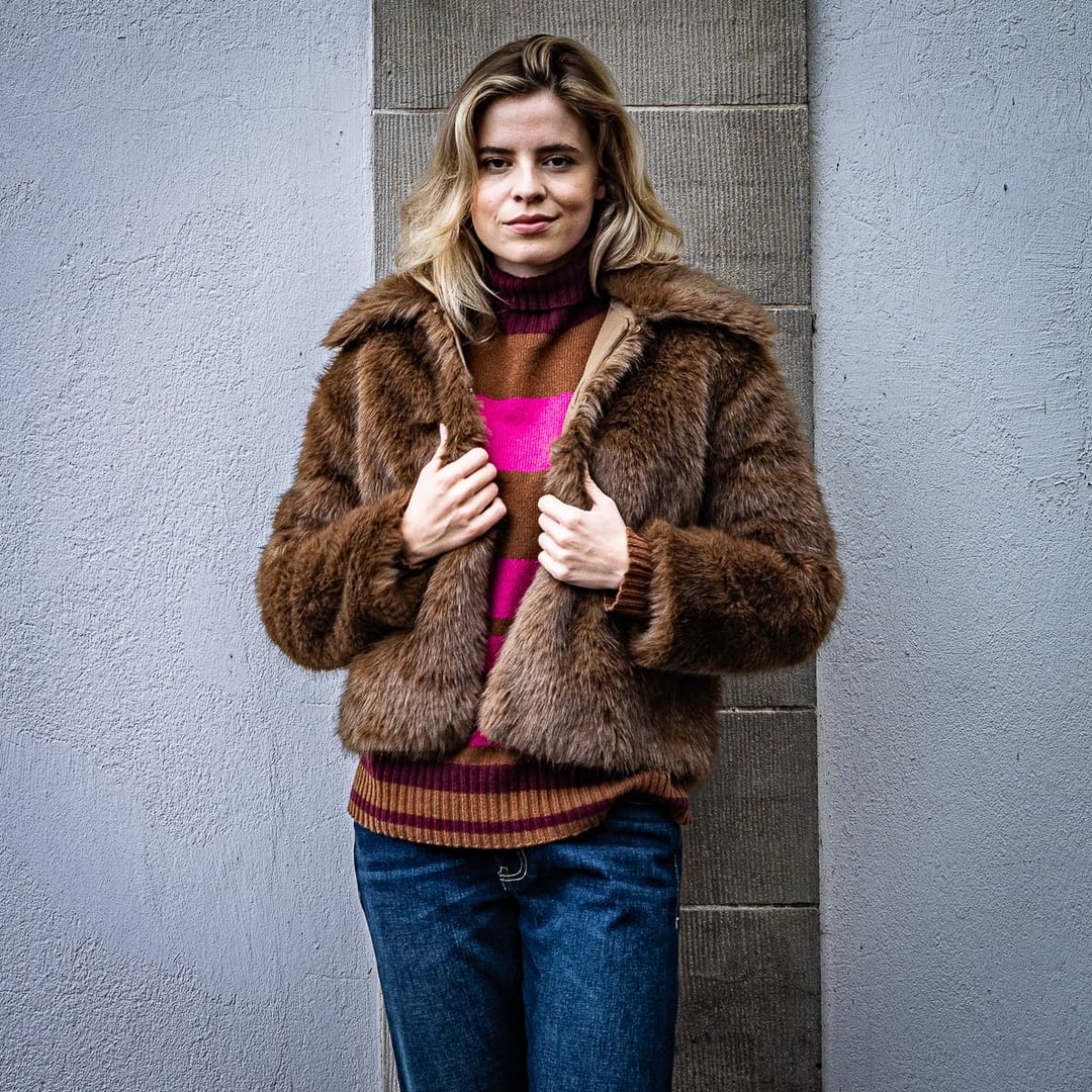 Von Casual bis Chic. Diese coole Jacke hat alles, um in diese Saison dein Lieblingsstück zu werden. Sie passt sowohl zu einem eleganten, als auch zu einem legeren Look. Die aus modischen Kunstfell gefertigte "Faux Fur Jacke mit Umlegekragen", vom französischen Fashion-Label "Des Petits Hauts" ist ein echter Allrounder. Die gerade geschnittene Jacke hat eine versteckte Verschlusshaken-Reihe und einen markanten Umlegekragen. Für einen stilvollen Auftritt an kühleren Tagen.