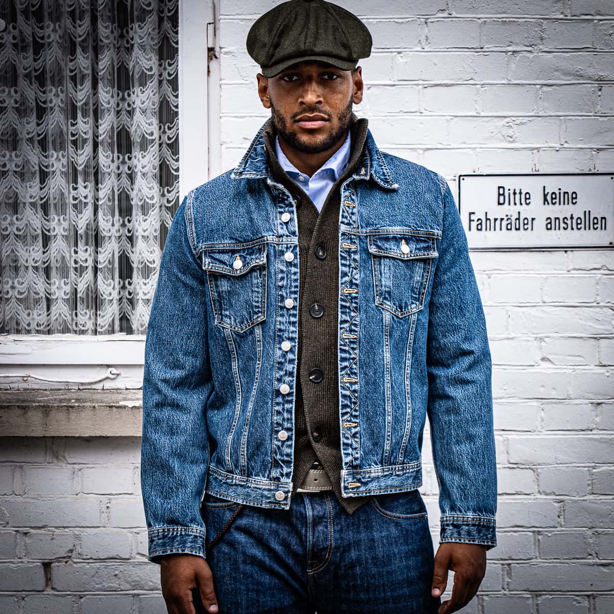 Sie ist ein unverzichtbarer Bestandteil jeder Männergarderobe: Die Jeansjacke, vielseitig kombinierbar und perfekt zum Layern. Hier wird sie mit einer Strickjacke darunter getragen. Unabhängig von der Jahreszeit lässt sie sich immer gut tragen, kombinieren und gehört damit zu den Kleidungsstücken, die in keiner Garderobe fehlen sollten. Hier zeigen wir sie in der gewaschenen Variante mit besonders schönem Farbspiel. Alternativ gibt es die Jeansjacke aber auch in ungewaschenen RAW-Denim.